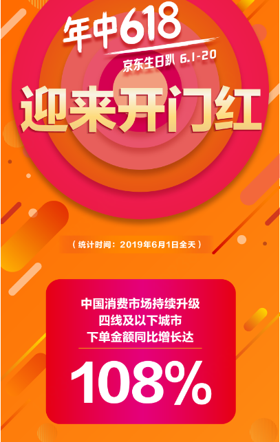 深圳新聞網2019年6月3日訊 6月1日零時剛過,京東后臺銷售數據顯示訂單量就呈現出井噴狀態(tài),一年一度的京東618全球年中購物節(jié)正式開啟。京東大數據顯示,6月1日全天四線及以下城市下單金額同比增長達108 %。
