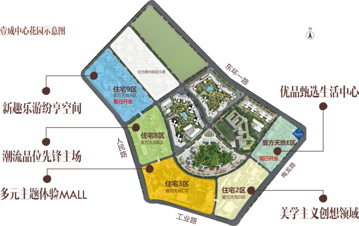 目前,壹方天地E區(qū)、A區(qū)已相繼亮相,為龍華商業(yè)更添異彩,尤其是A區(qū)的開業(yè),為龍華居民帶來了全新的購物、休閑、娛樂空間,迅速成為龍華地標(biāo)商業(yè)。