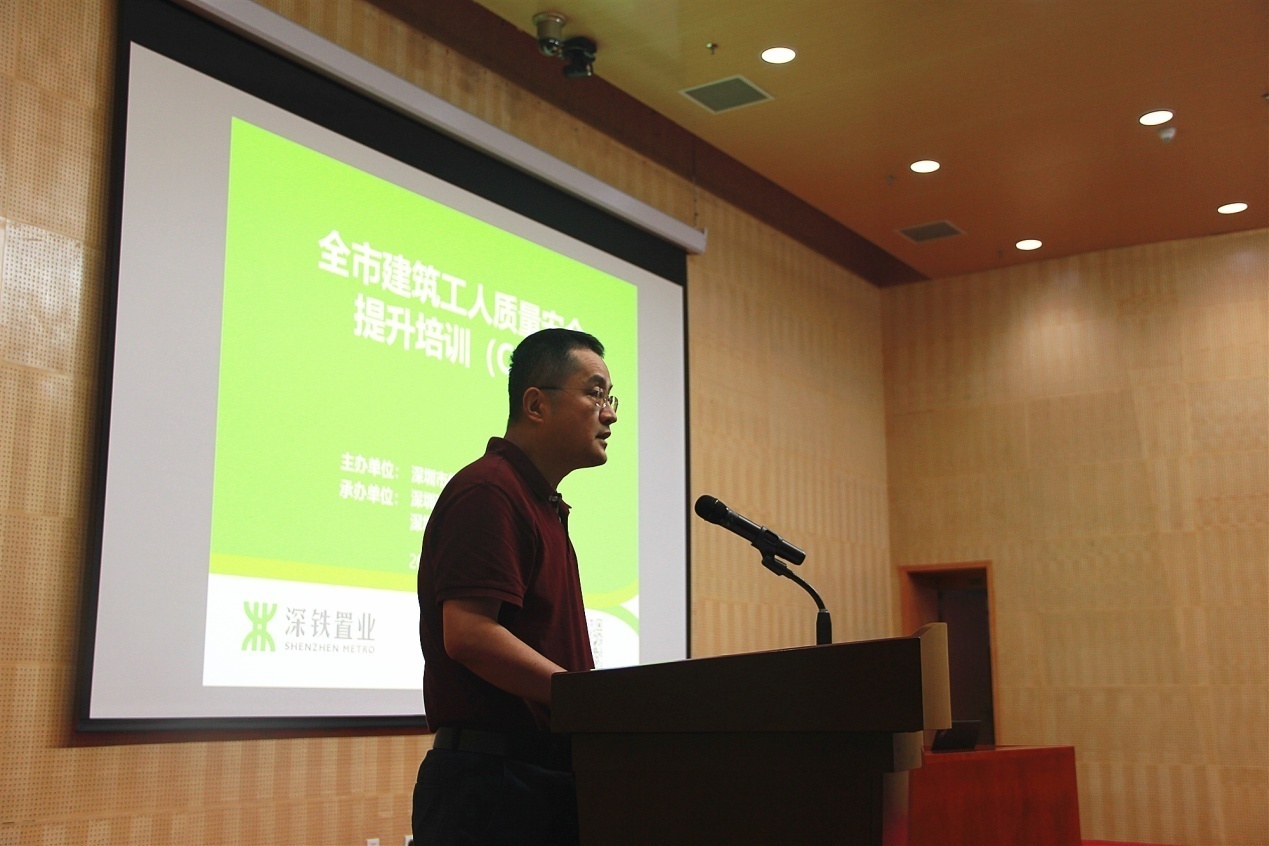 深圳市住房和建設(shè)局建筑市場和招標(biāo)投標(biāo)監(jiān)管處副處長董亮首先對一線工人表示親切的慰問,并對深圳地鐵置業(yè)集團(tuán)積極響應(yīng)政府號(hào)召,扎實(shí)落實(shí)工人安全質(zhì)量培訓(xùn)工作表示肯定。本次培訓(xùn)是市住建局建筑工人質(zhì)量安全培訓(xùn)提升工作方案的重要組成部分,接下來將在全市全面推行A、B、C、D、E五類培訓(xùn)。由政府、企業(yè)、協(xié)會(huì)、培訓(xùn)機(jī)構(gòu)四方力量共同攜手推進(jìn)崗前崗后、場內(nèi)場外、線上線下培訓(xùn)教育工作。今后,未經(jīng)過系統(tǒng)教育培訓(xùn)的工人將禁止進(jìn)入深圳市建筑市場。
