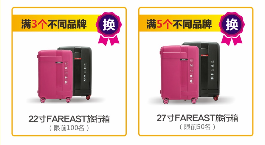 7.27-8.18,在國安居下定3單以上(單筆實(shí)交3000元)可以換購FAREAST豪華旅行箱。禮品有限,送完即止,不要錯(cuò)過機(jī)會哦。