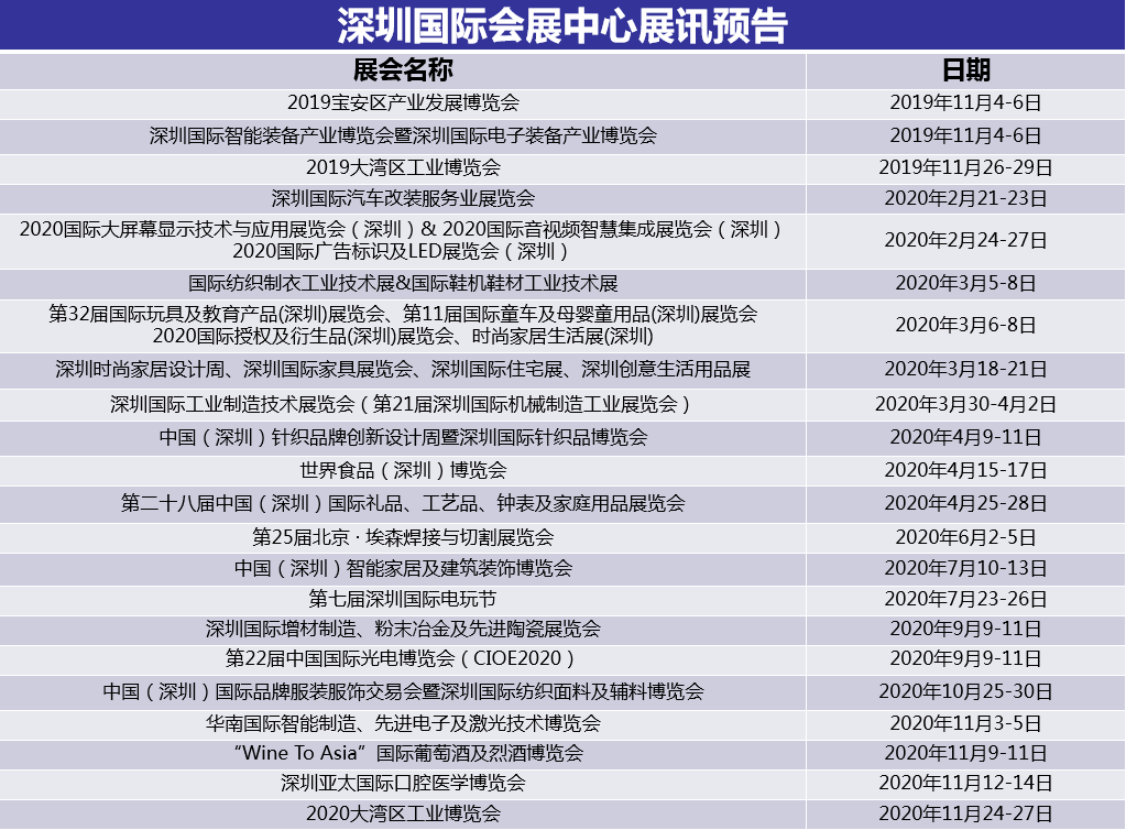 多場重磅展會(huì)將登陸深圳國際會(huì)展中心