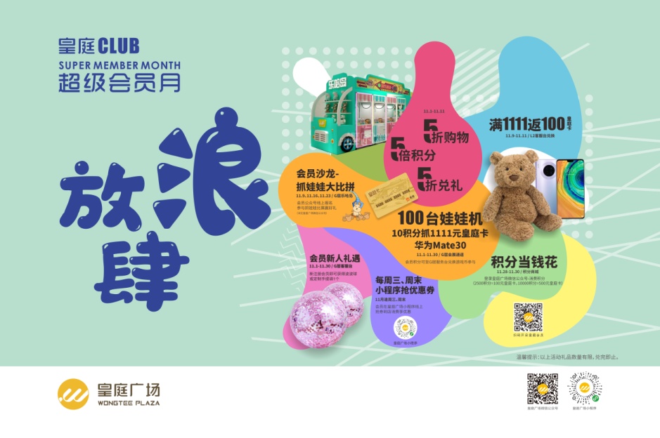 截止2019年10月底,深圳皇庭廣場共有注冊會員超25萬人。面對如此龐大的會員基數(shù),在強化會員粘性和刺激消費者消費兩個層面上,投入了精準(zhǔn)的定位與解決方案。此前,在2018年11月由深圳皇庭廣場匠心打造專屬會員的“超級會員月”中取得了不凡業(yè)績,今年以“放肆浪”為主題的超級會員月也將在11月全面展開。