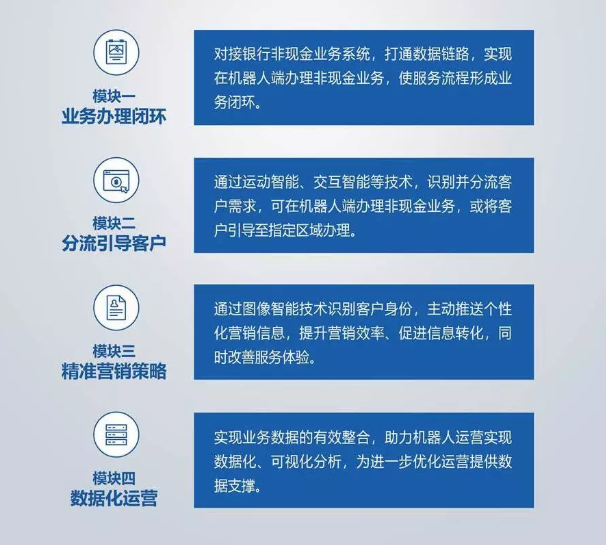 人工智能機(jī)器人與金融業(yè)務(wù)的完美結(jié)合,助力加速金融網(wǎng)點(diǎn)智能化建設(shè)、提升營銷效率、豐富金融營銷場景。