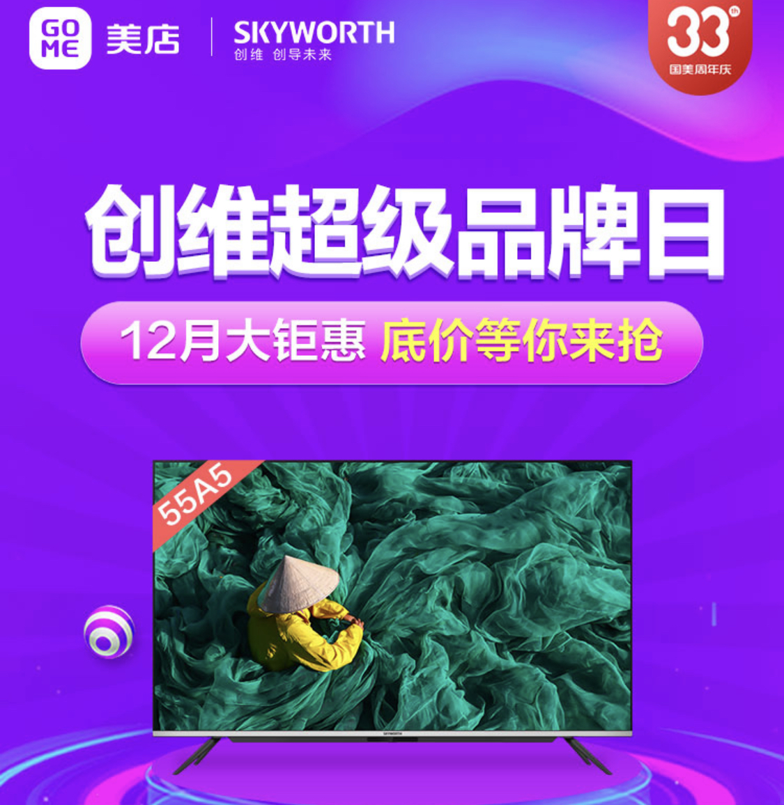 國美33周年慶期間,創(chuàng)維超級(jí)品牌日也在國美美店同步開啟,相比于其他品牌,創(chuàng)維電視沒有那么多活動(dòng),僅僅采用了價(jià)格直降的方式,簡單粗暴,直接購買即可。