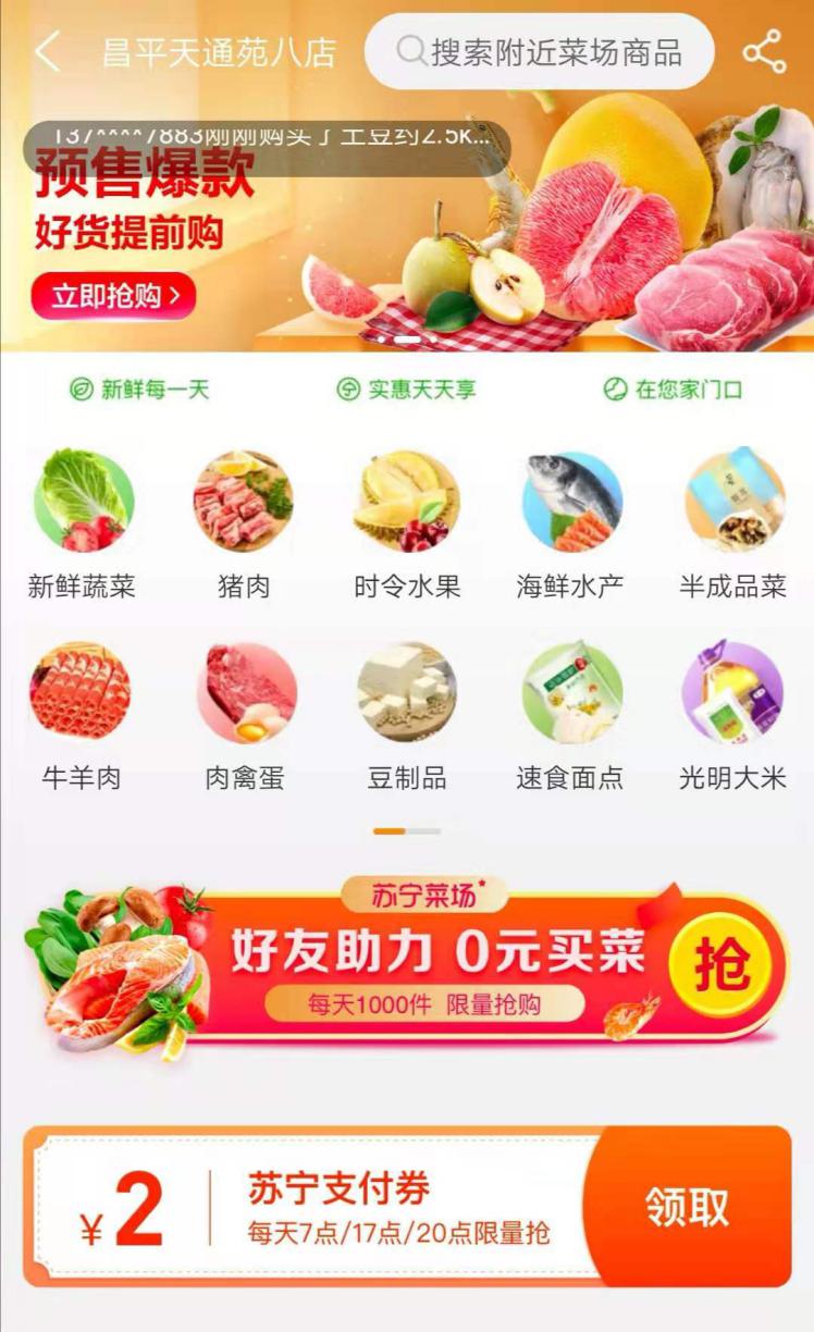 目前,蘇寧菜場已覆蓋東城、朝陽、豐臺、石景山、海淀、順義、通州、大興、房山、門頭溝、昌平、平谷、密云、懷柔共計(jì)14個(gè)市轄區(qū),在當(dāng)?shù)厣霞苌唐稴KU超200個(gè),其中時(shí)令蔬菜占比達(dá)40%。