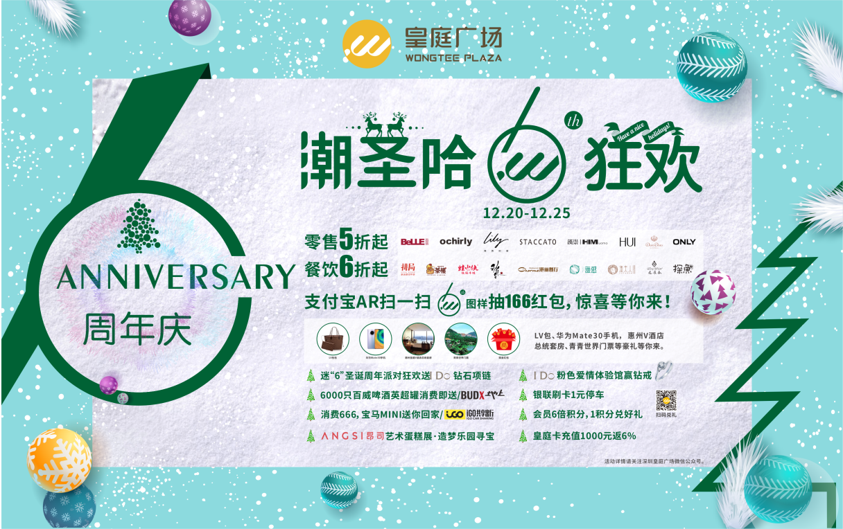 六周年慶期間,深圳皇庭廣場(chǎng)攜手場(chǎng)內(nèi)200余家優(yōu)質(zhì)商戶、銀聯(lián)等進(jìn)行資源合作,并通過自有小程序,組合線上引流包,啟動(dòng)支付寶AR掃碼抽L(zhǎng)V、華為手機(jī)、166元現(xiàn)金紅包及商戶百萬(wàn)代金券驚喜;網(wǎng)紅餐飲、時(shí)尚零售折扣低至冰點(diǎn);更有迷“6”周年派對(duì)狂歡送百萬(wàn)好禮,寶馬MINI送回家等驚喜活動(dòng),期待與你在皇庭的光影空間里拉近距離,一起吃喝玩樂,嗨購(gòu)潮玩,6周年的故事期待有你參與!