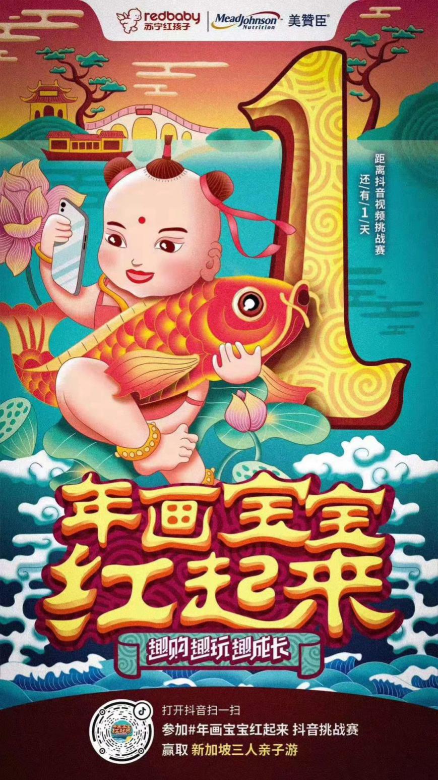 上周,蘇寧紅孩子官方發(fā)起了一場“年畫寶寶紅起來”的抖音挑戰(zhàn)賽活動。12月10日-12月31日,在抖音搜索話題,使用蘇寧紅孩子專屬貼紙,讓萌娃變身年畫寶寶,發(fā)布曬娃視頻,就能參與。參與活動就有機(jī)會贏取全家新加坡親子游大獎(jiǎng),寶萌照更有機(jī)會登上戶外大屏,紅動全城。