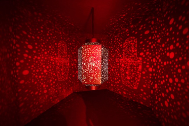 璀璨光芒自中央巨大華美鏤空燈籠中散發(fā),熠熠生輝,四周投射出美麗非凡的奇幻光影,交織成美輪美奐的法式元素。輕輕撥動(dòng),華美燈籠裝置緩緩轉(zhuǎn)動(dòng),點(diǎn)點(diǎn)光影如走馬燈般流轉(zhuǎn)變幻,打造震撼視覺體驗(yàn)。