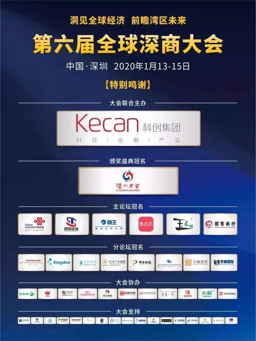 深圳新聞網(wǎng)2020年1月14日訊 1月13日晚,由深圳市商務(wù)局指導(dǎo),深圳市深商總會(huì)、深圳市商業(yè)聯(lián)合會(huì)主辦,順德區(qū)人民政府聯(lián)合主辦,瀘州老窖股份有限公司冠名的第六屆全球深商大會(huì)頒獎(jiǎng)盛典以及深投實(shí)業(yè)集團(tuán)(深圳)有限公司冠名的“洞見全球經(jīng)濟(jì),前瞻灣區(qū)未來”論壇在保利劇院開幕。