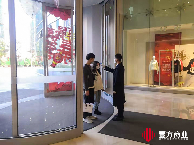 環(huán)境之外,壹方商業(yè)還配合政府加強(qiáng)疫情預(yù)防工作,及時(shí)發(fā)現(xiàn)可能的感染者,避免病毒的進(jìn)一步傳播。在營項(xiàng)目均要求顧客戴口罩進(jìn)入,并設(shè)立多個(gè)體溫監(jiān)測點(diǎn),安排專人對進(jìn)場顧客進(jìn)行無縫全覆蓋的體溫監(jiān)測,確保為人民群眾營造有序、健康、衛(wèi)生的環(huán)境,有力保障了社會民生穩(wěn)定。
