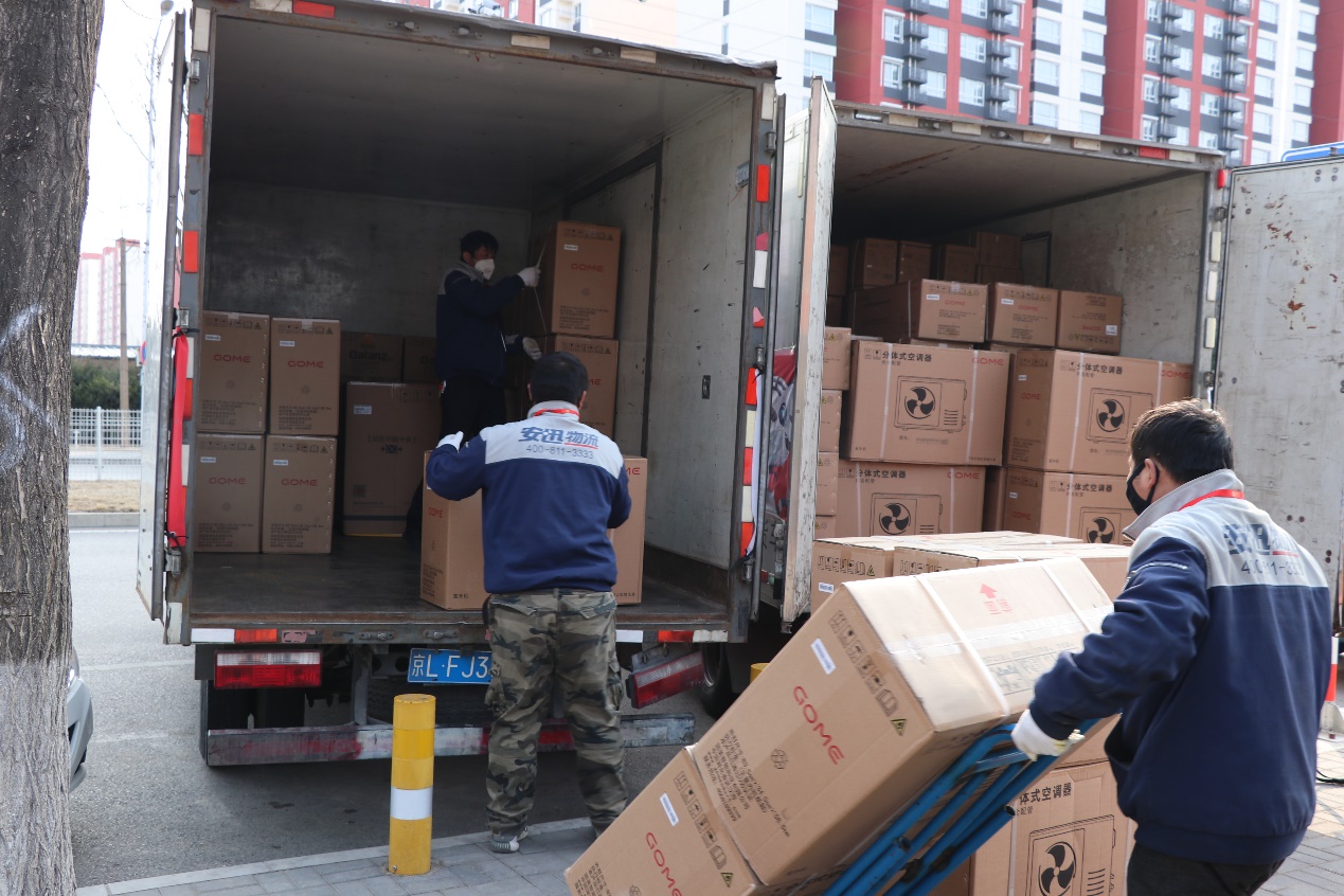 一大早,天剛剛亮,國美北京安迅物流金盞物流園門前2輛物流車又開始了忙碌的物資搬運工作。國美送裝工程師徐海亮說:“今天的配送時間緊任務(wù)重,大家天沒亮就來到物流園,生怕耽誤了發(fā)車。我們都希望為北京當(dāng)?shù)氐囊咔榉揽刈鳇c事。”他參與了前日的第一批物資配送工作,又自告奮勇地加入了此次送裝工作。經(jīng)過2小時的車程,國美送裝工程師們又開始投入了緊張的家電安裝工作中,他們不但將每一臺電器安裝到位,還反復(fù)調(diào)試并詳細講解使用方法。當(dāng)天下午2點,捐贈的物資全部安裝完畢。