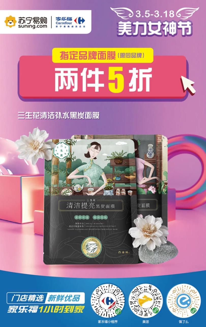 此外,3月5日至3月18日,指定品牌面膜兩件5折,一鍵下單,家樂?!按a”上送到家。