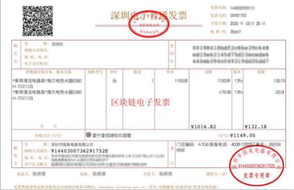 見圳客戶端·深圳新聞網2020年3月27日訊 日前,全國首張家電零售業(yè)區(qū)塊鏈電子發(fā)票在國美零售深圳分公司翠竹店成功開出。在成為深圳市上線區(qū)塊鏈電子發(fā)票的第一家家電零售商后,國美零售深圳分公司將向全市20家門店進行全面推廣。深圳區(qū)塊鏈電子發(fā)票繼金融保險、公共交通、商超餐飲、停車服務、互聯(lián)網服務等行業(yè)后,又將應用場景拓展至了家電零售領域。