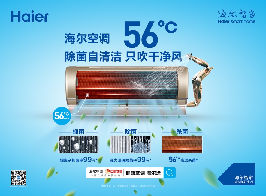 不僅如此,針對(duì)空調(diào)臟、清洗難的問(wèn)題,海爾還升級(jí)了56度C除菌自清潔空調(diào)。當(dāng)空調(diào)開(kāi)啟自清潔后,蒸發(fā)器溫度可達(dá)56℃以上,達(dá)到除菌除塵的效果。