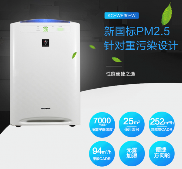 夏普 KC-WE30-W采用的是簡潔大方的外觀設計,產(chǎn)品尺寸為393mm*270mm*603mm,凈離子群結(jié)合濾網(wǎng)的凈化方式,能夠有效去除甲醛,PM2.5以及其他有害細微顆粒物。這款產(chǎn)品具備特有的凈離子群空間凈化技術(shù),對霉菌和病毒的殺滅有很大幫助,最后離子會形成水返回到空氣中。