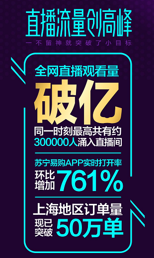 為支持上海五五購物節(jié),蘇寧在20億消費券的基礎(chǔ)上,將為上海消費者推出“超級百億補貼”,還將通過額外發(fā)放“爆品專屬補貼”“分期免息補貼”“以舊換新補貼”等讓利補貼,力促上海消費回暖。直播當(dāng)晚,共計發(fā)出5億消費券。