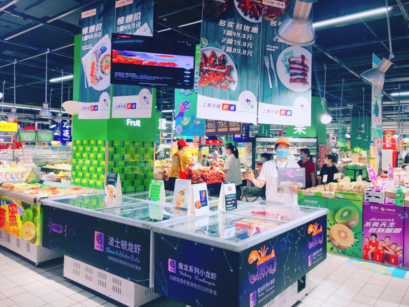 (圖片為家樂福門店直播帶貨現(xiàn)場(chǎng))