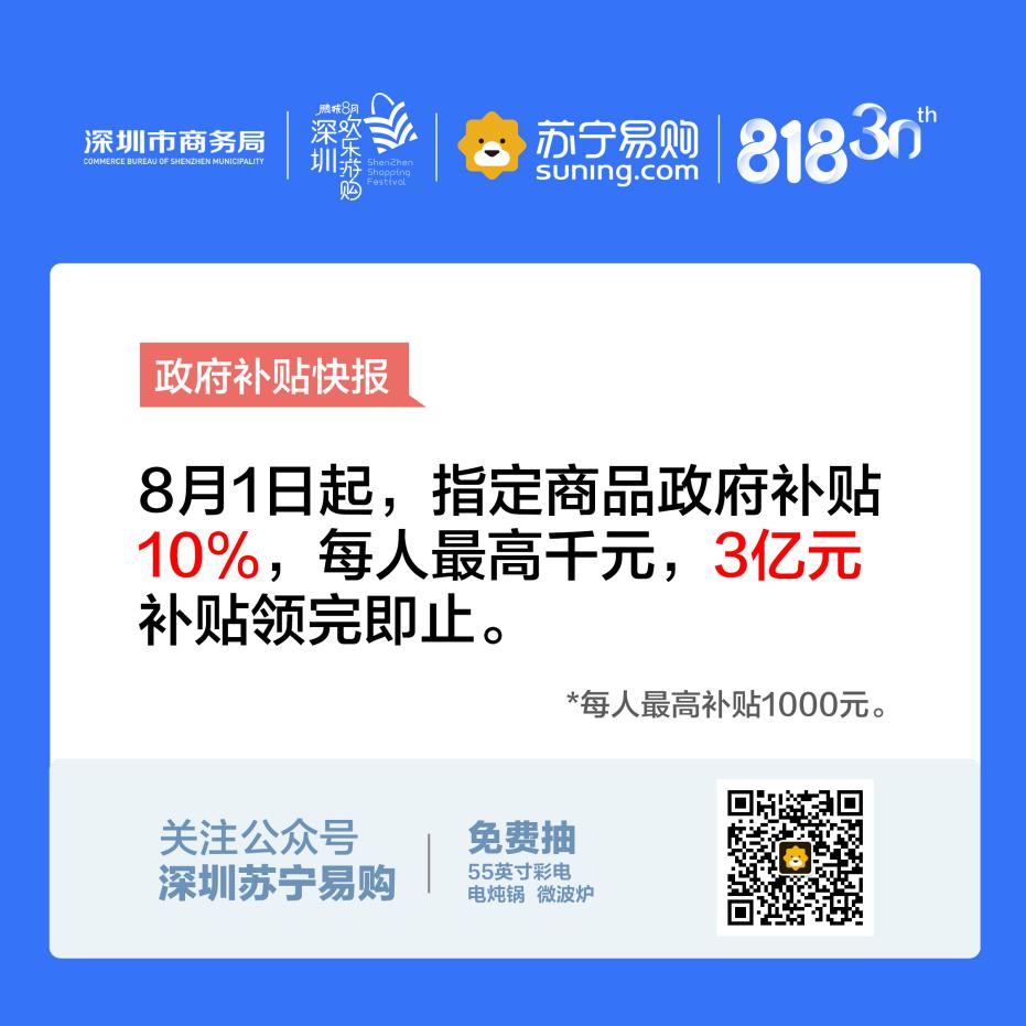 第二屆鵬城八月歡樂游購——深圳家電數(shù)碼消費節(jié)在華強北群星廣場自8月1日起拉開帷幕,已向深圳居民推出3億元家電和數(shù)碼產(chǎn)品補貼政策,用戶按實際購買價格的10%給予補貼,每位居民累計最高補貼1000元。粵港蘇寧電器店及家樂福與大潤發(fā)近3000件商品均可享用。品類覆蓋齊全,商品選擇范圍廣,為消費者帶來一場盛大家電數(shù)碼消費節(jié)的同時為經(jīng)濟消費做出強有力的貢獻(xiàn)。