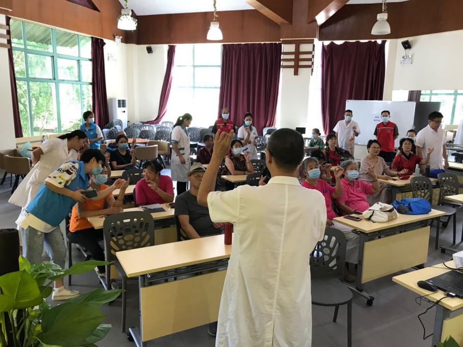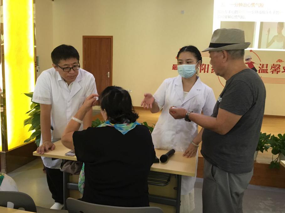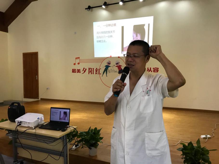 活動過程中,全場互動和諧有序:老年朋友們仔細聽講,積極提問,中醫(yī)專家耐心解答,現(xiàn)場手把手教老年人指位法,一分鐘解決疼痛、咳嗽、止喘等技法,現(xiàn)場學習、現(xiàn)場體驗,現(xiàn)場有效,激發(fā)了老年人的興趣,受到了老年人的歡迎。