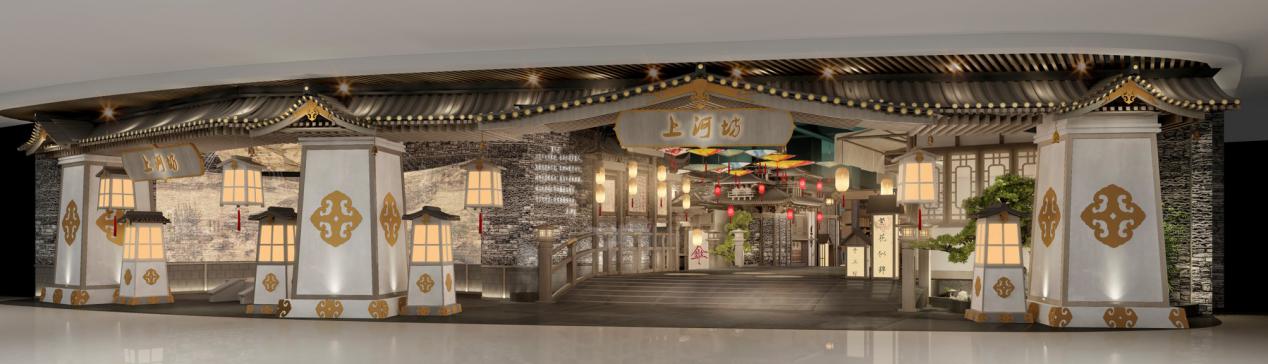 上河坊名稱源自于北宋著名畫家張擇端繪制的不朽杰作《清明上河圖》,這幅用高度現(xiàn)實主義手法創(chuàng)作的長卷風俗畫,通過對市俗生活的細致描寫,生動地再現(xiàn)了北宋汴京升平時期的繁榮景象。整部作品長而不冗,繁而不亂,嚴密緊湊,有如一氣呵成,畫卷中大至原野、浩河、商廊,小至舟車人物、攤鋪、擺設、市招文字皆統(tǒng)組一起,零售門店與酒肆茶樓交相輝映,真實自然,令人有如臨其境之感。而位于寶安大仟里L3層的上河坊主題街區(qū),還將融合古代建筑繁華街景與現(xiàn)代投影科技的結(jié)合,力求還原最真實的《清明上河圖》中汴河兩岸繁華的鬧市風景,營造“古街風貌”的場景,融合“美食文化”與“非遺體驗”的核心內(nèi)容,為消費者呈現(xiàn)前所未有的購物體驗。