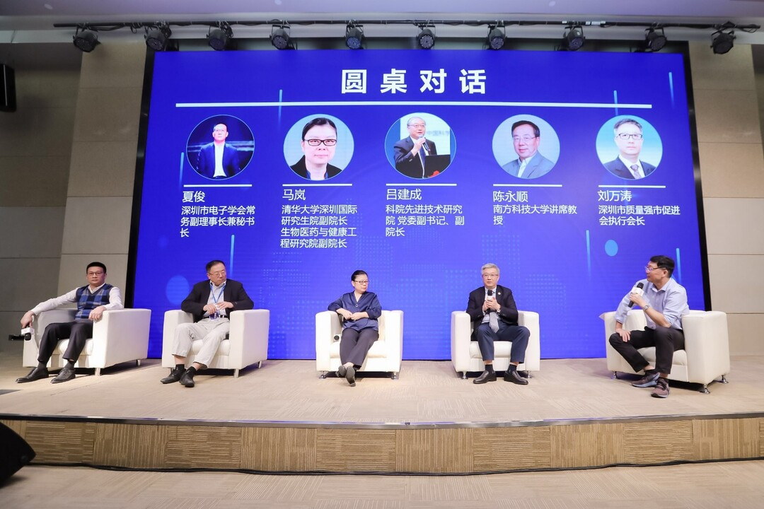 在圓桌對話環(huán)節(jié),深圳市電子學會常務副理事長兼秘書長夏俊、深圳市質量強市促進會執(zhí)行會長劉萬濤等嘉賓以“學科發(fā)展、科技進步、人才成長和科學普及等方面的作用”為主題展開交流與討論。