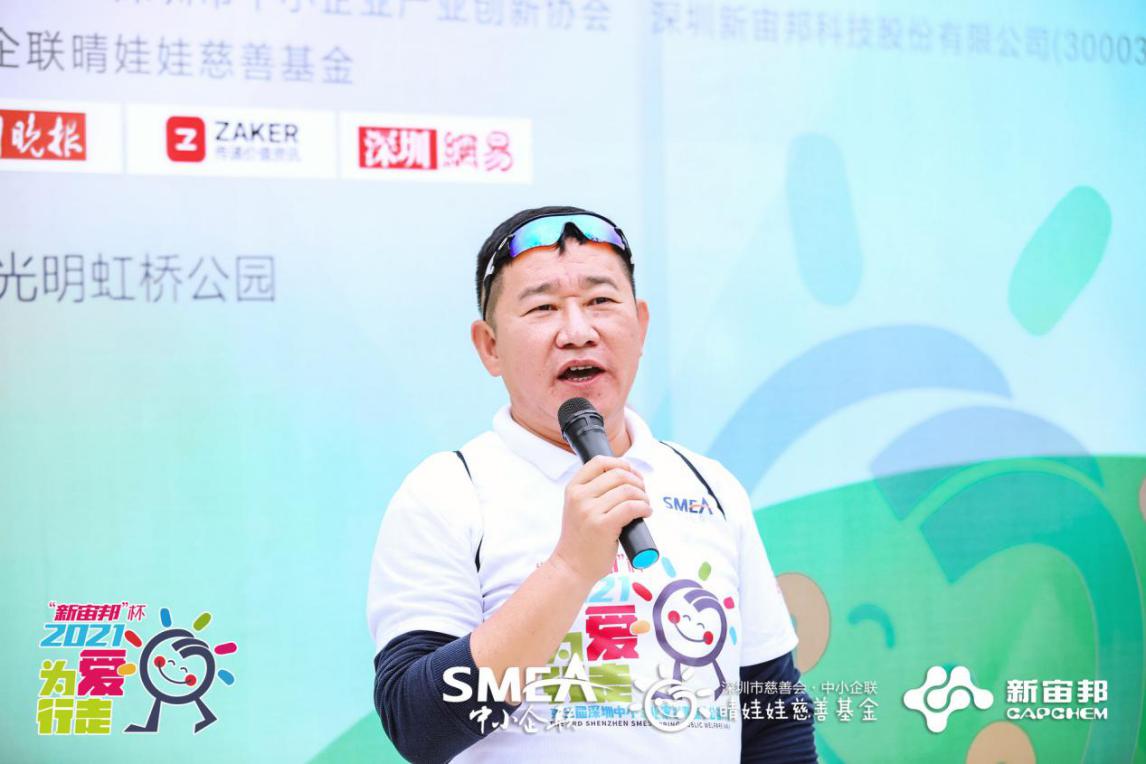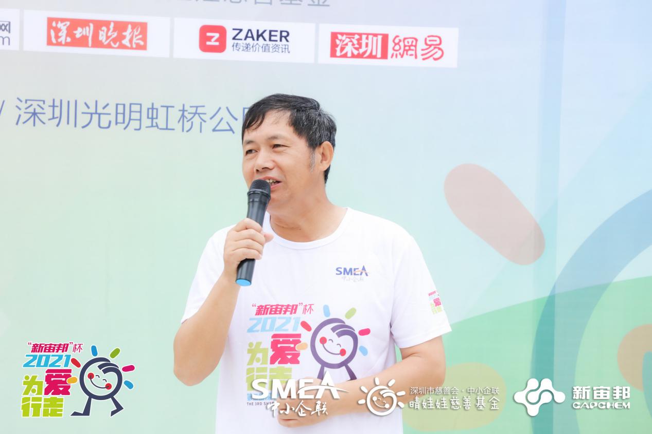 深圳中小企聯(lián)會長、深圳市杰科電子有限公司董事長黃榮添為開幕式致辭。他表示:“感謝新宙邦對本次慈善公益徒步活動做出的貢獻,以及今天參加此次活動的愛心企業(yè)家、愛心人士們的大力支持,我代表深圳中小企聯(lián)感謝大家的參與,今后也希望通過各類活動讓更多愛心人士關注我們“晴娃娃”,給更多的孩子送去關愛,能讓他們綻放開心的笑容?!?/p>