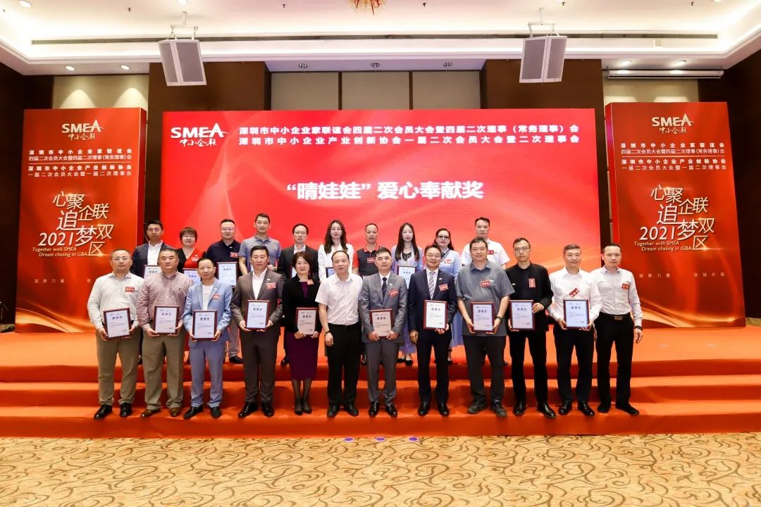 深圳市中小企業(yè)服務(wù)局副局長陳小林(一排左六)為獲得感恩相伴獎(jiǎng)的企業(yè)家頒獎(jiǎng)
