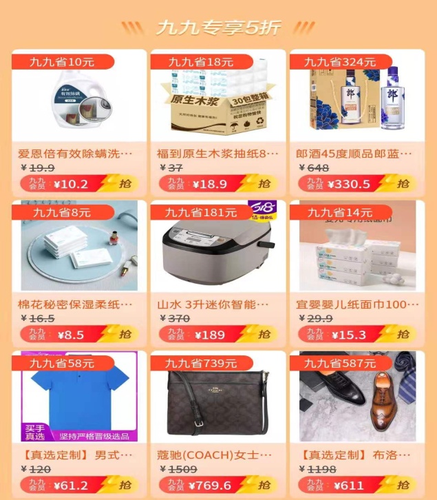 九九會(huì)員專(zhuān)享單品券花小錢(qián)享大快樂(lè)