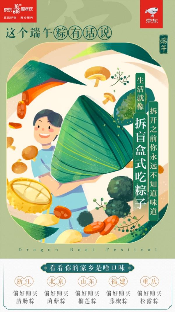 此外,京東自有品牌京東京造原創(chuàng)設(shè)計(jì)產(chǎn)出的一款國潮包裝的粽子禮盒,在這個(gè)端午節(jié)也受到了消費(fèi)者的極大歡迎。產(chǎn)品包裝上,傳統(tǒng)龍舟競逐插畫所演繹出的國潮美學(xué),正呼應(yīng)了傳統(tǒng)風(fēng)尚的迅速崛起,而別出心裁的原創(chuàng)禮盒設(shè)計(jì),則實(shí)現(xiàn)了精準(zhǔn)創(chuàng)新,滿足了更年輕的消費(fèi)者個(gè)性。