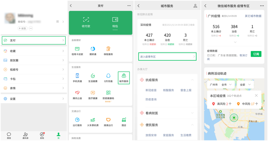 讀特客戶端·深圳新聞網(wǎng)2021年6月16日訊 (記者 田志強)端午期間,為減少疫情傳播風險,廣東市民紛紛響應號召實行就地過節(jié),落實非必要不出省的相關(guān)要求。為進一步助力廣東及全國人民抗疫,為市民提供準確疫情資訊及抗疫服務(wù),近日,微信更新城市服務(wù)疫情專區(qū),支持查看疫情數(shù)據(jù)、病例活動軌跡、疫情資訊以及接入抗疫服務(wù)。全國用戶打開“我-支付-城市服務(wù)-疫情專區(qū)”,即可快速觸達各類疫情相關(guān)服務(wù)。