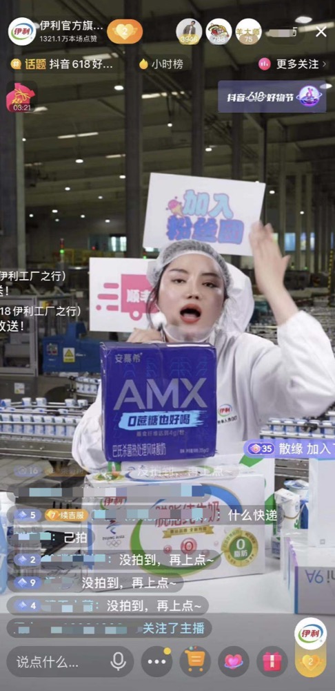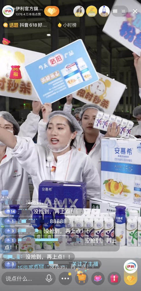 同時,伊利洞察到消費者對產(chǎn)品品質(zhì)的關(guān)注,和直播間消費者一起深入伊利工廠,直接在好奶的源頭開啟溯源直播,極大地滿足了消費者所見即所得的需求,同時也提升了直播的可看性,充分契合了興趣電商的內(nèi)核。這種新穎的直播模式最終創(chuàng)造了連續(xù)霸屏帶貨小時榜5小時的自播紀錄,在618當天實現(xiàn)了抖音行業(yè)單日自播榜第一,單日銷售額破千萬的傲人成績。