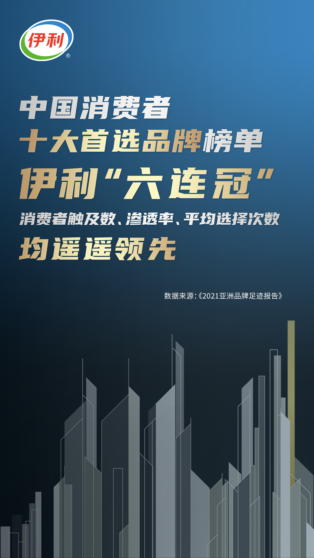 伊利連續(xù)六年成為消費(fèi)者選擇最多的品牌榜首