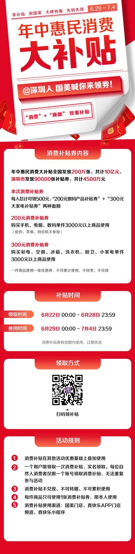 讀特客戶端·深圳新聞網(wǎng)2021年6月23日訊 (記者 常軍平)國(guó)美近期掀起的促消費(fèi)活動(dòng)熱浪一波接一波。據(jù)悉,為推動(dòng)“拉內(nèi)需,促消費(fèi)”的政府惠民政策落地,國(guó)美于6月21日開啟“年中惠民消費(fèi)大補(bǔ)貼”活動(dòng),持續(xù)到7月4日,全力助推消費(fèi)者品質(zhì)生活提升,提振消費(fèi)信心。