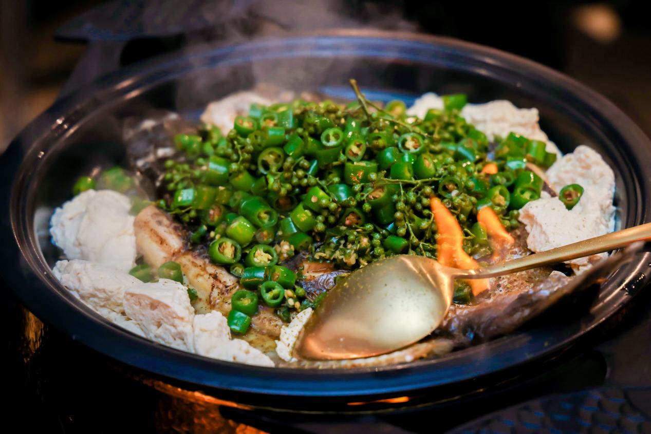 除了視覺感官外,探魚全新lab店的產(chǎn)品完全顛覆了探魚以往的產(chǎn)品結(jié)構(gòu)和產(chǎn)品體驗(yàn),所有的產(chǎn)品都以“極致釋放”為準(zhǔn)則,涼菜更冰爽,熱菜更火熱,更高的顏值、味道更加的讓人印象深刻,有好玩、驚喜的感覺。探魚的經(jīng)典產(chǎn)品“鮮青椒烤魚”也在lab店有口味上和形式上的升級(jí),味道上加重了核心的“爽麻”的口感,上菜形式也增加了添酒增香、點(diǎn)火炙烤等充滿儀式感的內(nèi)容。提高菜品品質(zhì)的同時(shí),也使顧客擁有了更別致的用餐體驗(yàn)。
