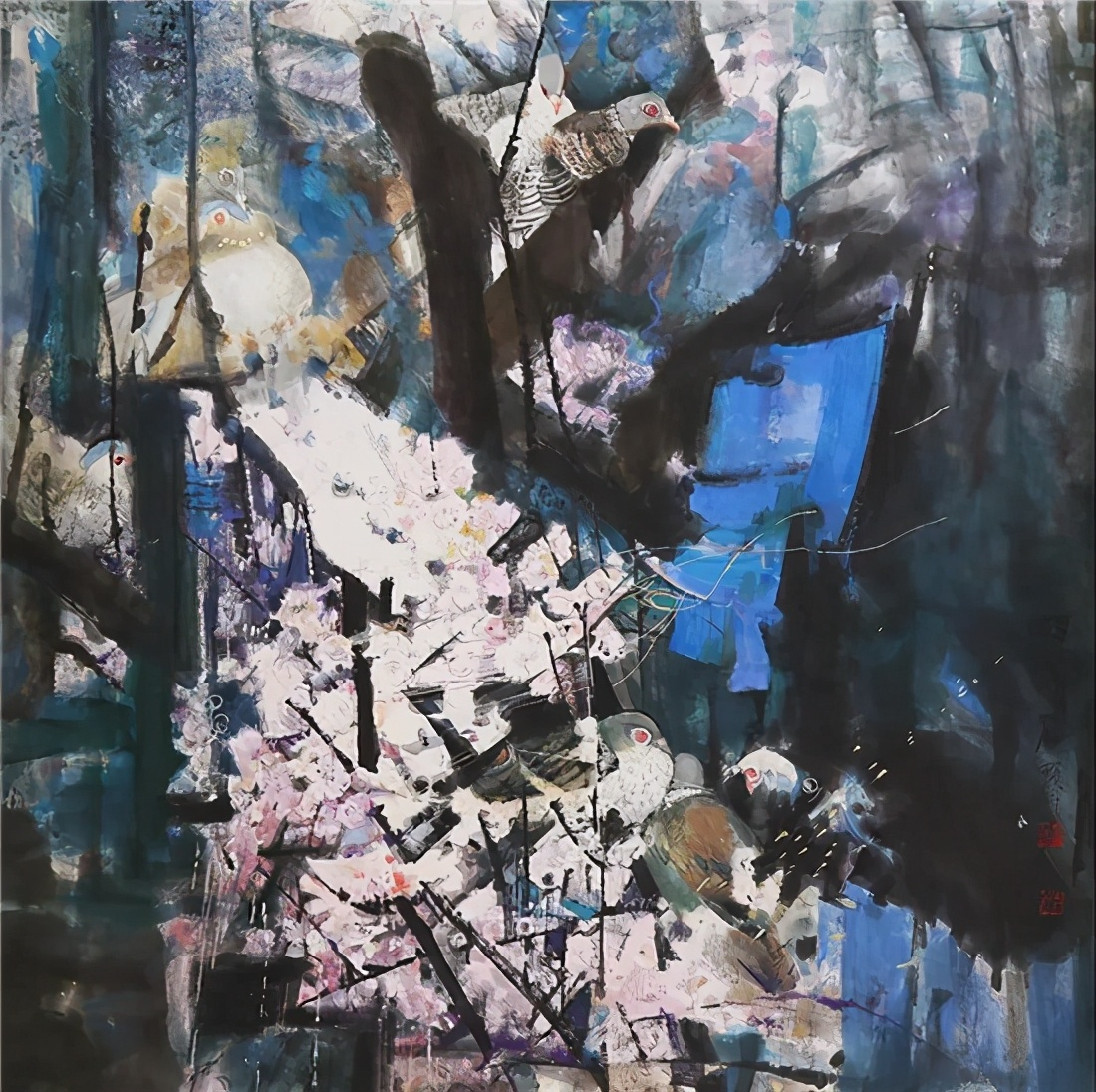 展品:石齊《櫻花》124cm x 124cm紙本設色2000年