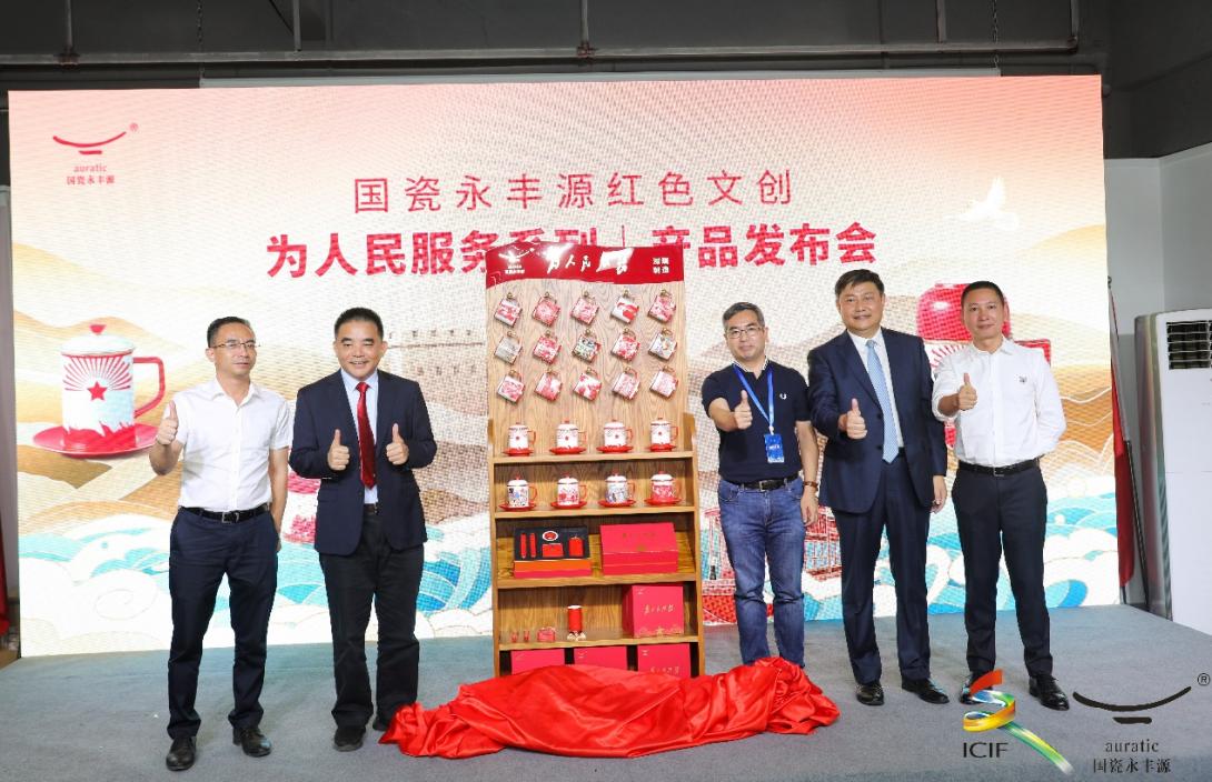 在大會現(xiàn)場,國瓷永豐源劉權(quán)輝攜與會領(lǐng)導(dǎo)共同為紅色文創(chuàng)系列新品隆重揭幕。據(jù)了解,這一系列紅色文創(chuàng)產(chǎn)品,已于今年8月正式入駐北京國家黨史館。