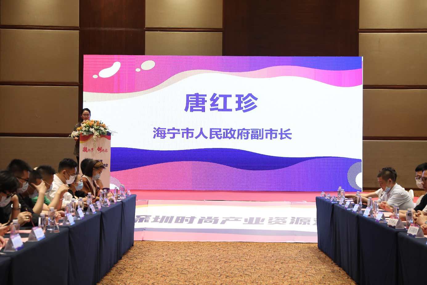 中國紡織工業(yè)聯(lián)合會副會長夏令敏,中國紡織工業(yè)企業(yè)管理協(xié)會常務(wù)副會長謝青,中國紡織工業(yè)聯(lián)合會信息化部副主任殷強,深圳市時裝設(shè)計師協(xié)會會長周世康等行業(yè)領(lǐng)導;贏家時尚集團副總裁袁瓊,深圳影兒時尚集團有限公司采購部經(jīng)理趙偉、中國金鼎獎設(shè)計師劉勇等知名企業(yè)和設(shè)計師代表;海寧市人民政府副市長唐紅珍,以及海寧市重點鎮(zhèn)(街道)、開發(fā)區(qū)、市相關(guān)部門單位的領(lǐng)導及嘉賓出席對接會。對接會由海寧市時尚產(chǎn)業(yè)中心副主任戴璐主持。