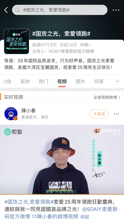 讀特客戶端·深圳新聞網(wǎng)2021年10月22日訊(記者 田志強)近日,索愛廣州25周年慶領跑活動在網(wǎng)絡持續(xù)發(fā)酵,引爆輿論熱烈關注。作為音頻數(shù)碼行業(yè)首個登錄廣州塔的國貨品牌,索愛25周年領跑活動吸引了大量的媒體和達人齊聚廣州塔,索愛品牌和產(chǎn)品熱度以廣州為中心迅速向周邊地域傳播。在索愛冠名高鐵、簽約陳小春夫婦為品牌形象大使等品牌事件的疊加聚合效應下,#國貨之光,索愛領跑#等話題和熱度持續(xù)傳播至各社交平臺,各個類別KOL相繼為索愛發(fā)聲,僅在微博平臺的話題閱讀量已突破數(shù)千萬。