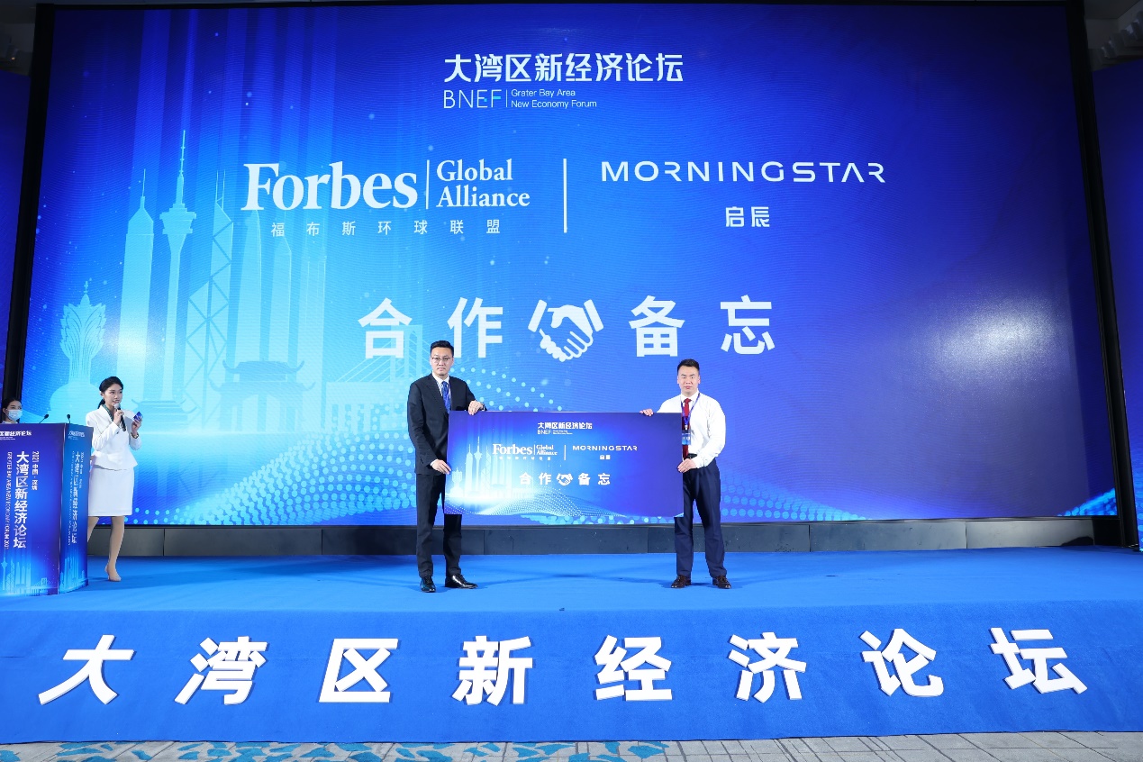 論壇現(xiàn)場(chǎng)啟動(dòng)福布斯環(huán)球聯(lián)盟和新經(jīng)濟(jì)論壇合作備忘儀式,大灣區(qū)新經(jīng)濟(jì)論壇發(fā)起人馬曉晨和福布斯環(huán)球聯(lián)盟會(huì)員發(fā)展部總監(jiān)郭雋祎Michael上臺(tái)攜手展示合作備忘,未來(lái)合作雙方將提攜并進(jìn),共同發(fā)展。