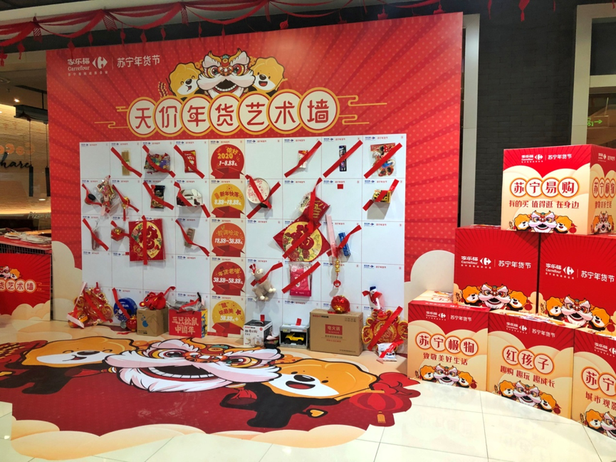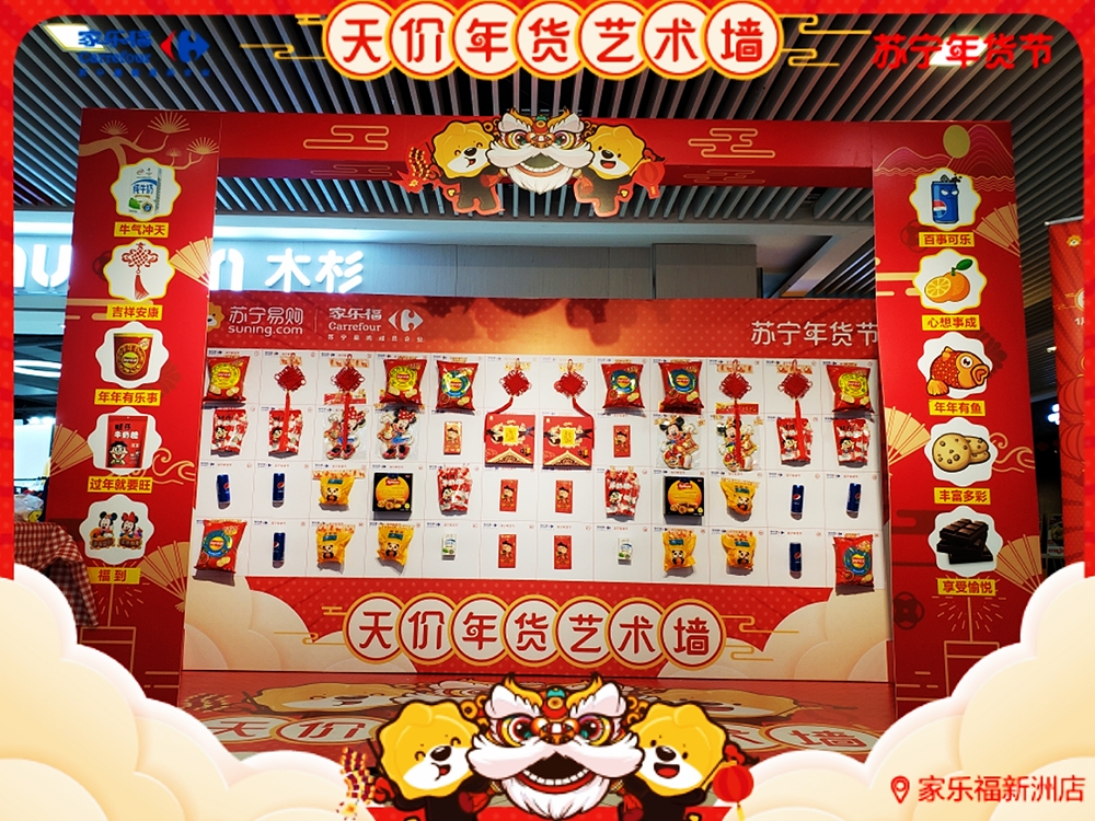 蘇寧易購聯(lián)合家樂福將“天價年貨藝術墻”引進國內,在1月16日至1月18日登陸深圳家樂福新洲店。