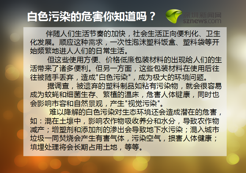 伴隨人們生活節(jié)奏的加快,社會(huì)生活正向便利化、衛(wèi)生化發(fā)展。順應(yīng)這種需求,一次性泡沫塑料飯盒、塑料袋等開始頻繁地進(jìn)人人們的日常生活。