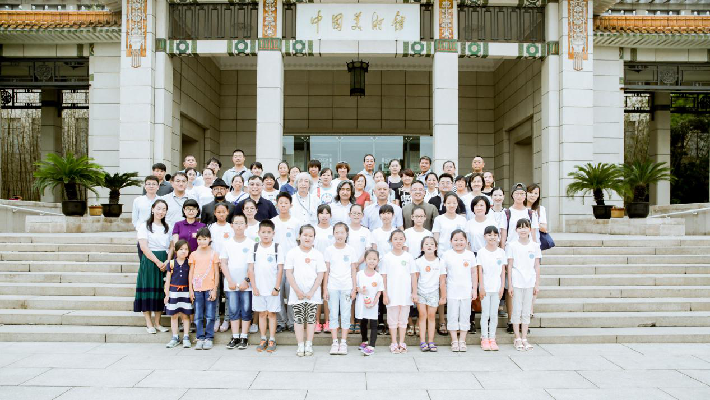 圖說:中國美術(shù)館館長吳為山、副館長胡偉與參加活動的嘉賓、環(huán)衛(wèi)子女及家長合影留念,表達對 “2016環(huán)衛(wèi)子女成長計劃”項目的支持。