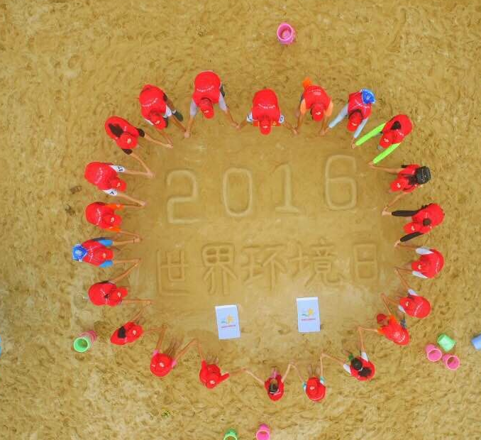 在徐賢、姚軍的鼓勵(lì)和幫助下,劉曉紅組織了第一場文明微行動(dòng)——2016年6月5日大梅沙沙灘世界環(huán)境日宣傳。她為此活動(dòng)制定了在沙灘砌立體字宣傳環(huán)保的方案,這看起來簡單實(shí)際的方案對(duì)于劉曉紅她們這些第一次堆沙字的自愿者來說難度可不小?;顒?dòng)當(dāng)天,當(dāng)她和微友們齊心協(xié)力把大家心中的“2016世界環(huán)境日”這幾個(gè)大字成功堆砌出來,向沙灘的游客宣傳“人人參與環(huán)保,世界才會(huì)更加美好”時(shí),每位參與的志愿者都興奮得圍著“2016世界環(huán)境日”在沙灘上跳起來。