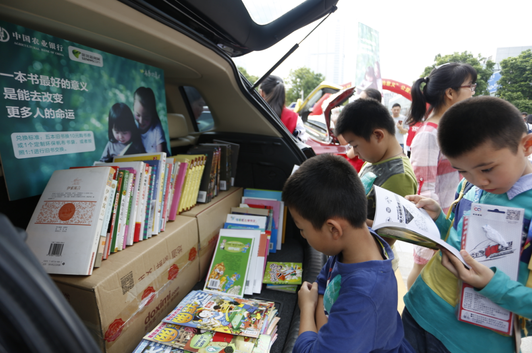 本次活動(dòng)將車尾箱作為展臺(tái),活動(dòng)參與者按照1:1進(jìn)行舊書(shū)交換,或到深圳農(nóng)行現(xiàn)場(chǎng)設(shè)置的捐書(shū)點(diǎn)捐獻(xiàn)舊書(shū),每捐出五本舊書(shū),可獲得由農(nóng)行送出的10元書(shū)劵。活動(dòng)吸引來(lái)自錦田小學(xué)、深圳實(shí)驗(yàn)學(xué)校中學(xué)部及深圳新聞網(wǎng)網(wǎng)友共40多個(gè)家庭參與,僅兩個(gè)小時(shí)便交出漂亮的“成績(jī)單”,現(xiàn)場(chǎng)交換圖書(shū)900多本,捐贈(zèng)愛(ài)心書(shū)籍1000余本。