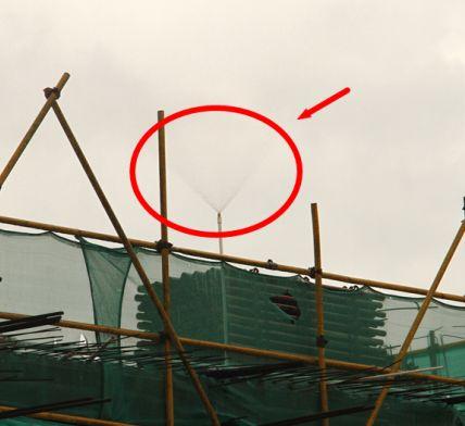 工地樓層外架上設有固定霧狀噴淋裝置?!?/p>