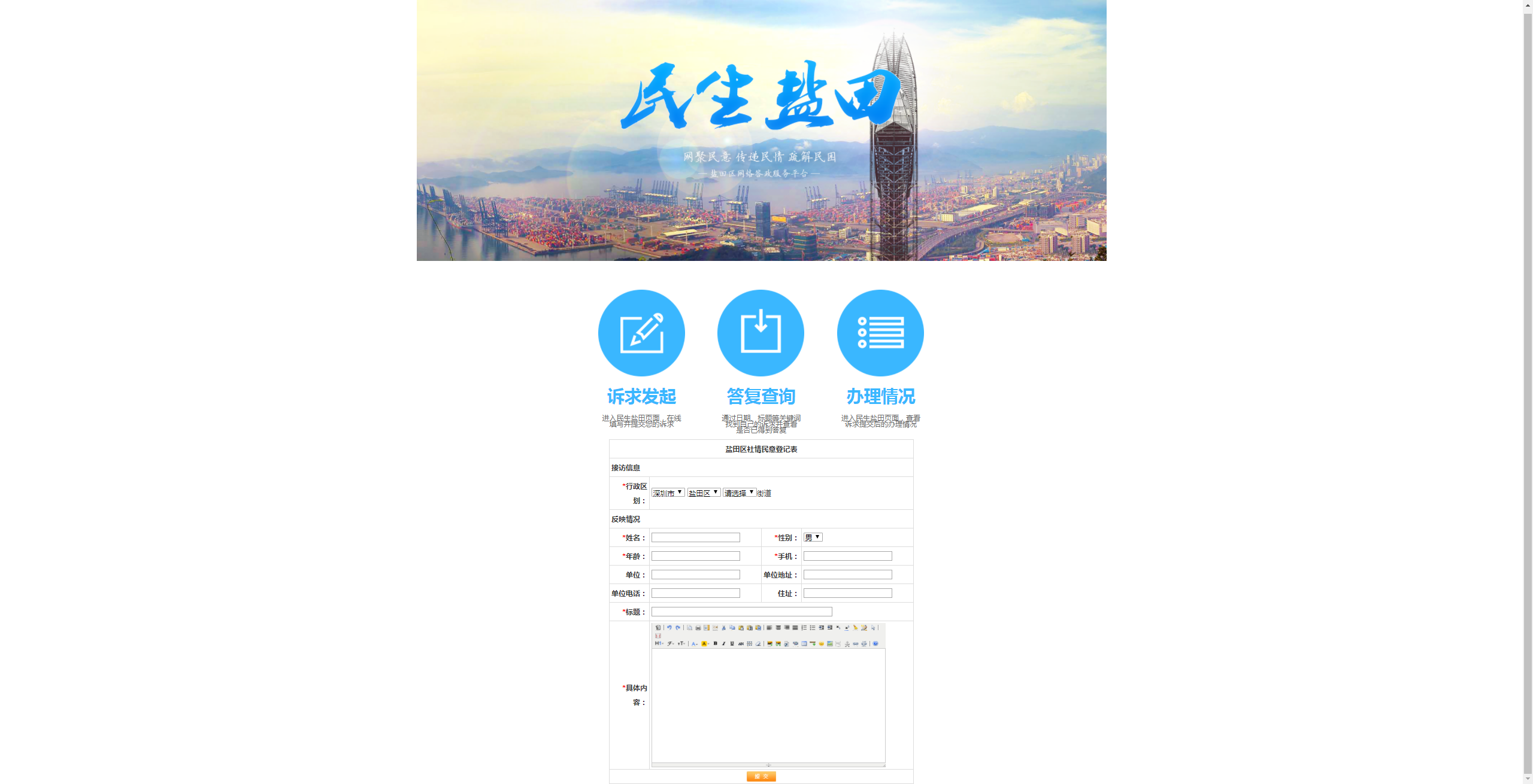 (1)進(jìn)入民生鹽田頁面,在線填寫并提交您的訴求