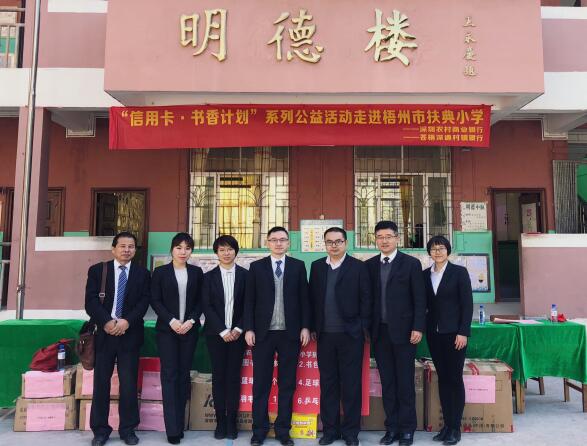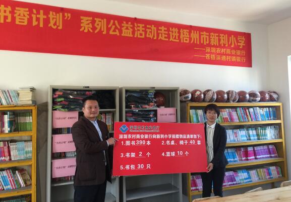 2017年,由深圳農(nóng)商行發(fā)起的“信用卡公益計(jì)劃·書香圖書室”捐贈(zèng)活動(dòng),深入走進(jìn)廣西壯族自治區(qū)的偏遠(yuǎn)山區(qū),為當(dāng)?shù)剌^為貧困的扶典小學(xué)、新利小學(xué)、林旺小學(xué)和育才小學(xué)帶來溫暖和鼓勵(lì)。本次活動(dòng)共捐贈(zèng)各類圖書1899冊(cè)、文體用品130套、書包590個(gè)、書桌書架椅子42套,有效地幫助這四所小學(xué)建設(shè)充實(shí)圖書室,為孩子們創(chuàng)造良好的閱讀環(huán)境,讓更多孩子在閱讀中滋養(yǎng)向上生長的力量。