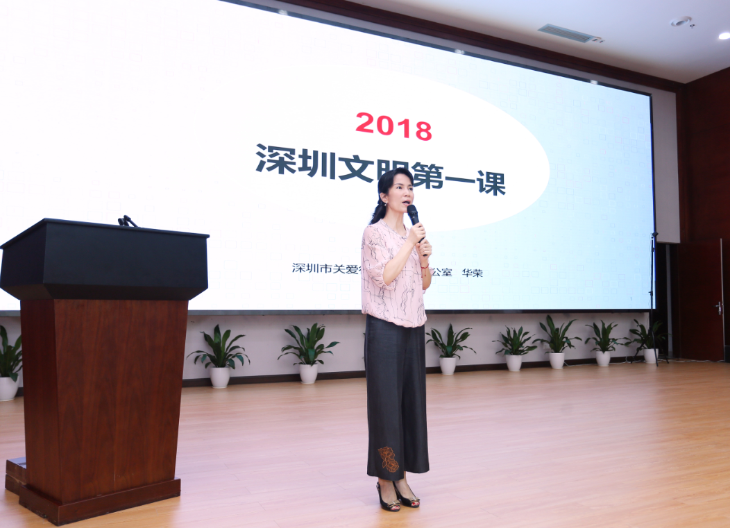 深圳市關(guān)愛辦副主任華榮以詳實(shí)的數(shù)據(jù)和感人的視頻講述文明第一課