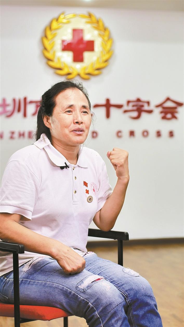 1997年,我從濟南市商河縣的農村來到深圳,幫妹妹照看孩子。一次偶然的機會,我看到路邊一輛無償獻血車,車上寫著缺A、B、O型血,這讓我想起了小時候看過的小人書,白求恩大夫獻出300毫升鮮血挽救了八路軍傷員的生命,心想現(xiàn)在自己也有機會通過獻血去救助危重的病人,真的太好了。漸漸地,我成了深圳市紅十字會的“??汀保渤闪松钲谑屑t十字會的志愿者。至今,我志愿服務時間近6萬小時,無償獻血316次。
