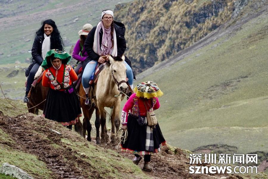 深圳新聞網(wǎng)訊 彩虹山被當(dāng)?shù)厝朔Q為維昆尼卡。深藏于秘魯庫斯科古城附近的安第斯山脈之中,多年來它一直隱藏在冰雪之下,據(jù)說是因為溫室效應(yīng),雪線升高露出真容,才于2016年被發(fā)現(xiàn),并迅速成為世界知名景點。這里可以觀賞到的還有冰川、高山草甸、羊駝以及當(dāng)?shù)厣贁?shù)民族的風(fēng)情。李仁奇攝